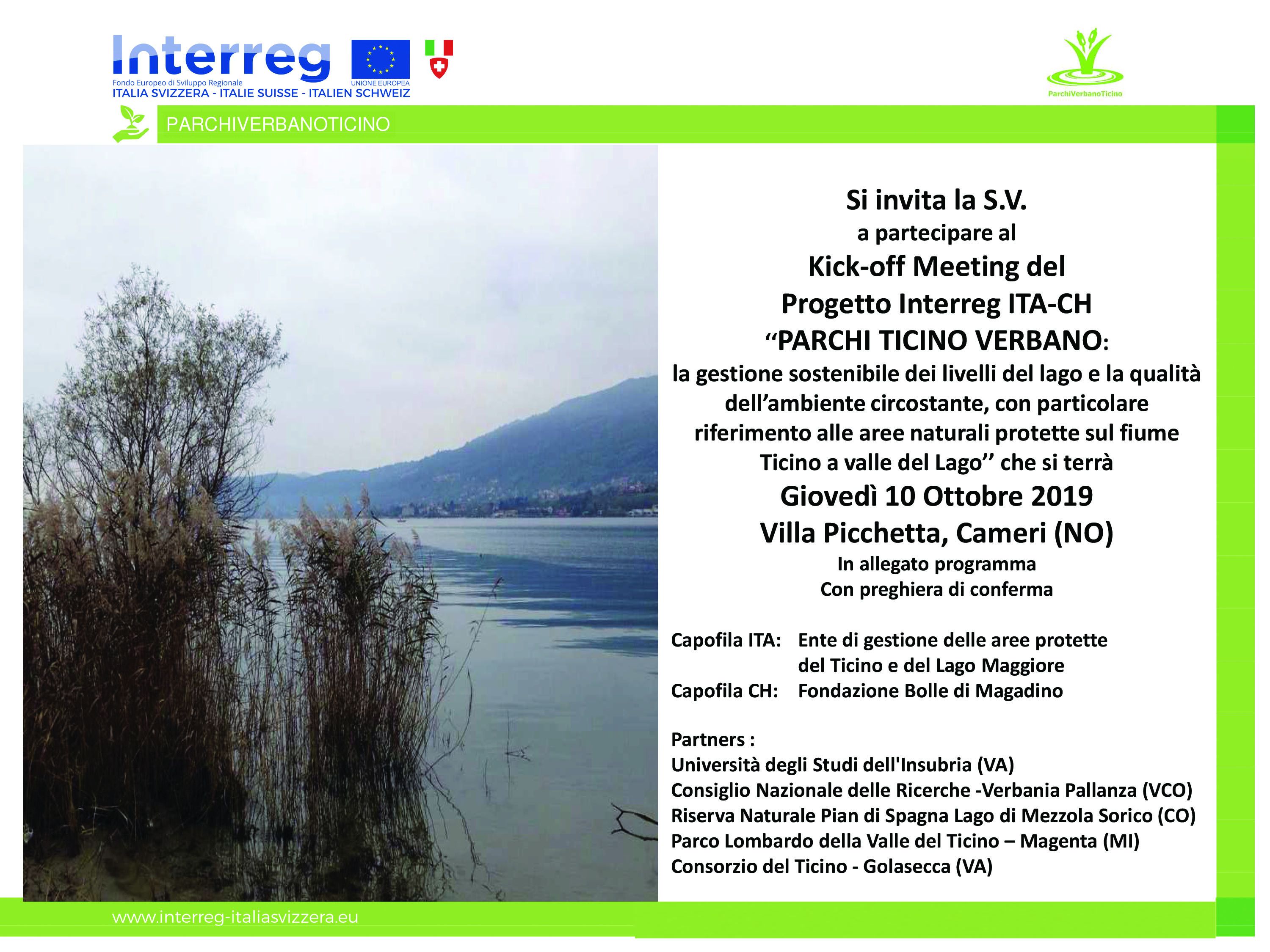 Il KICK - OFF MEETING del Progetto Interreg ITA - CH "PARCHI VERBANO TICINO" è previsto per Giovedì 10 Ottobre 2019 presso Villa Picchetta, Cameri (NO), giornata di apertura dei lavori.